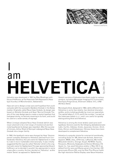 Before I started typography, I thought it would be just a simple subject to manage. However after going through 14 weeks of it, I have learned that typography is a not only a difficult subject but an extremely demanding in where you need to be observant and really know your design plan before only executing said plan. Going straight into designing without a plan would only lead you astray. This subject has also been technical in a way where you need to properly understand the fundamentals of what makes typography good. A good example of this would be task 2 where you need to know how and where you should be placing the passages to make it digestable by a reader. Surprisingly, typography class has also taught me some Illustrator shortcuts that I otherwise wouldn't have known. This would be certainly helpful in many upcoming classes in my degree. Overall, typography has taught me many important principles that I otherwise wouldn't know which would be very benificial to me when I enter into Typography II in the upcoming semesters and I can't wait what does the next one have in store for me.